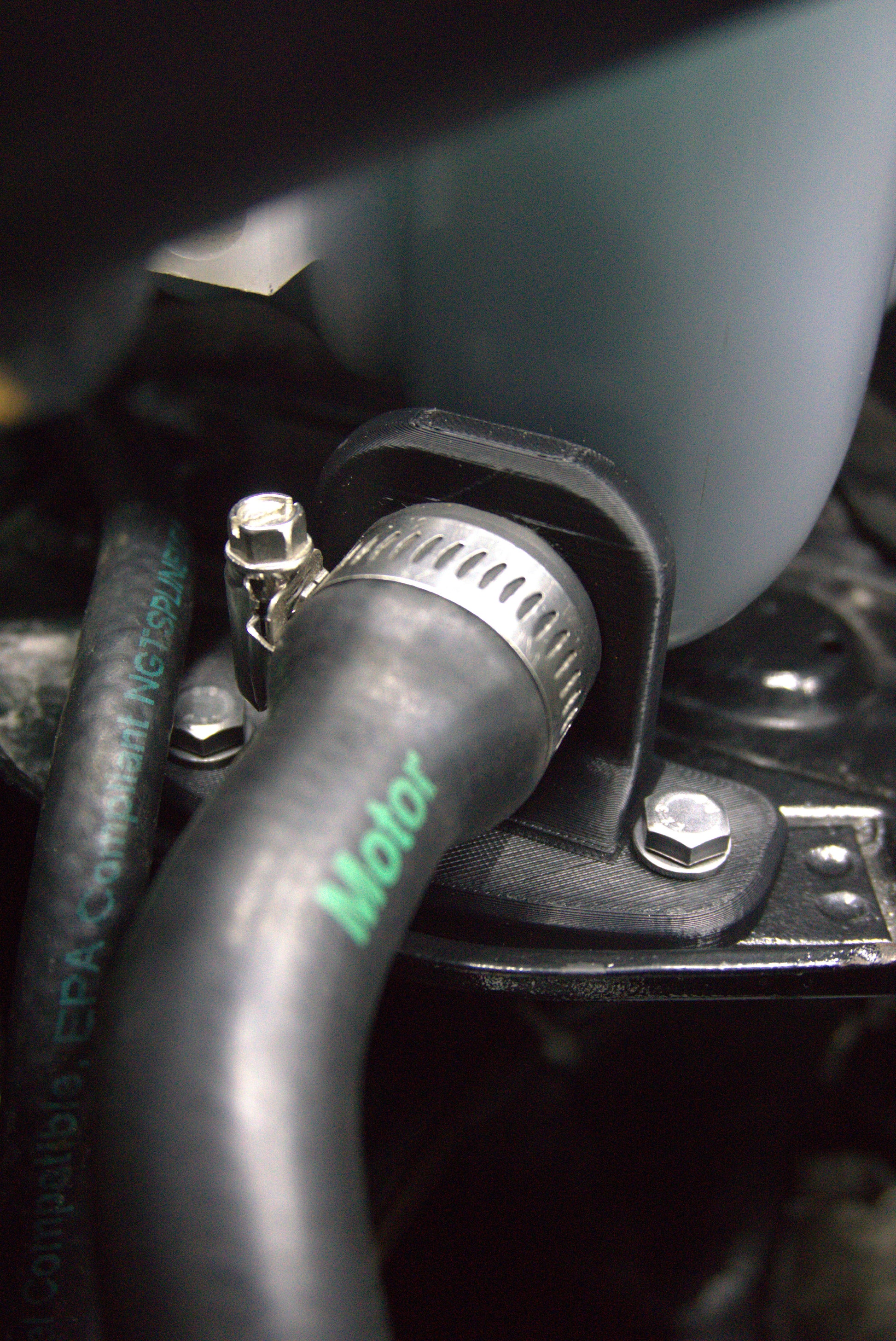 S54 or other engine swaps may force you to relocate the coolant reservoir elsewhere from the stock location on the passenger strut tower. This product allows for solid mounting of the late model coolant reservoir (Part # 17111712641) in the battery tray behind the passenger strut tower.